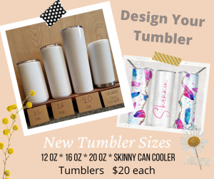 This will be an open event meaning that we will not have a single formal project. We will have several projects on hand and available to make right there: tumblers, doorhangers and tshirts/ transfers.